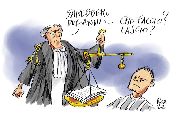 Nonostante questi addebiti pesantissimi, all’inizio del 2022 la Procura aveva già concluso con gli imputati un patteggiamento in cui, con un esercizio di creatività, faceva cadere l’appartenenza all’associazione mafiosa, e riduceva a poca cosa la pena per i due. Il Gip Enrico Borrelli approvava, ma il Procuratore Generale Giovanni Ilarda no: la derubricazione da appartenenza all’associazione mafiosa (art. 416 bis) a sostegno all’associazione mafiosa (art. 418) “è manifestamente errata ed eccentrica rispetto ai fatti descritti”. Infatti il codice descrive in maniera tassativa le condotte che configurano il molto meno grave reato di ‘sostegno’: “Darerifugio o fornire vitto, ospitalità, mezzi di trasporto, strumenti di comunicazione a taluna delle persone che partecipano all'associazione”; mentre i nostri avevano fatto ben altro, intimidito minacciando brutali violenze a imprenditori concorrenti e loro famiglie, oppure presieduto il luogo di ritrovo degli ‘ndranghetisti, ed altro ancora (che poi illustreremo meglio). Il PG quindi, nel giugno del ‘22 faceva ricorso in Cassazione.