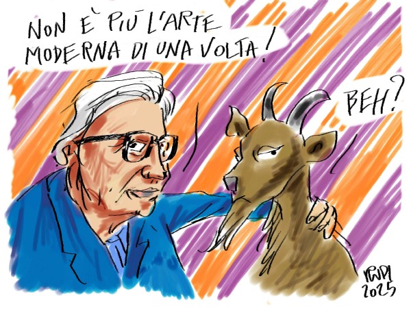 Ad illustrare la fine dell’era Sgarbi può essere utile il confronto sulle ultime mostre della Galleria Civica di Trento che, ricordiamolo, è nell’orbita del Mart. La Galleria aveva una mission: illustrare le ricerche attuali. Sgarbi la ha declinata in più occasioni come strumento per proporre artisti che si confrontassero con il classico, basta citare i titoli di alcuni eventi: “Camera Picta”, “Domus contemporanea”... Nel 2025, con Sgarbi ormai poco operativo, non a caso le cose cambiano: nel marzo di quest’anno c’è stata la mostra “Etruschi del 900”, evidentemente rivolta al passato, invece, ad aprile, la mostra “Intelligenze emotive” in cui l’attenzione al contemporaneo è totale.