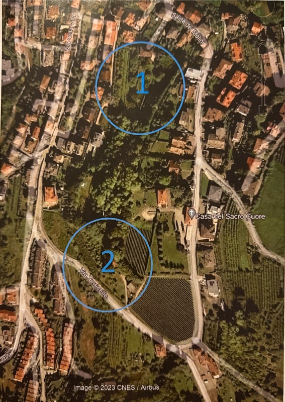 Se questa è la normativa, come viene poi applicata? Nella zona di cui stiamo parlando ci sono stati due distinti interventi. Uno, il più a sud, a ridosso di via Torricelle, realizzato dal gruppo Paterno. Utilizzando il terreno che si vede in foto, con due edifici nascosti nel verde, si è ribaltato tutto, e con una serie di premialità volumetriche si è creato una sorta di villaggio turistico (non sgradevole, a dire il vero, se si prescinde dai muraglioni al posto del verde) per un totale di 13 alloggi. Risultato paesaggistico: una serie di casette contornate da muraglioni. Risultato ambientale: agricoltura azzerata, dubitiamo che da qualche parte si possa fare un orto condominiale.