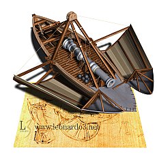 L’esposizione occupa poche sale e consiste nella ricostruzione, attraverso modellini in scala e grafica computerizzata, di alcuni dei progetti più interessanti del periodo (peraltro ottimo questo supporto informatico). Questi progetti sono legati all’economia idrica dell’epoca: si va dalle imbarcazioni a pale - dove queste sostituiscono i remi, perché più comode nell’utilizzo fluviale, alle imbarcazioni d’assalto, composte di corazza frontale per proteggere i soldati. Si toccano le tecniche costruttive dell’epoca, attraverso il progetto di una draga, necessaria per ripulire i fondali dai detriti, una gru che si muove sui binari, necessaria per costruire canali artificiali, e altro ancora. Spicca il progetto di una città ideale. Qui l’elemento fluviale gioca il ruolo di favorire i traffici (i canali artificiali arrivano direttamente davanti alle botteghe artigiane), ma è anche un elemento importante di profilassi: gli scarichi ed i rifiuti non sono accatastati negli stretti vicoli medievali, ma scaricati in acqua.