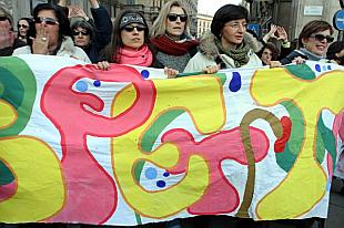 Mi ritrovo dietro lo striscione del nostro orgoglio di donne libere, insieme alle compagne di sempre, ed è un bell’incontro che si svilupperà nel corso della giornata, nel lungo cammino che ci porterà verso il palco commosso, intenso di piazza Duomo; e ci sembra di volare, nonostante la stanchezza, e ballare, con la felicità impalpabile dell’essere insieme in tante, uguali e diverse. Anche al tavolino di un bar elegante sorseggiando finalmente cioccolata calda, dopo tante ore all’aperto, nel lungo giorno di gennaio che portava già in sé le promesse della primavera. Sarà questa luce nuova a farci brillare gli occhi? Nei nostri racconti di donne, mamme, ora anche nonne, speranze e paure, stanchezza per lo stato del nostro Paese, voglia di non arrenderci. Zapatero è lontano ma presente in molti slogan, così come papa Benedetto, a cui si chiede più rispetto. Come al solito politica e "personale" si incontrano e si incrociano nei nostri discorsi a tratti concitati. Ci coccoliamo, ci complimentiamo, stiamo ancora abbastanza bene, per fortuna, siamo ancora abbastanza forti, molti angoli smussati, meno polemiche e protagonismo, lasciate da parte le divisioni del tempo che fu ci confrontiamo, forti delle nostre esperienze, delle differenze e della coerenza che ci ha riportate in piazza. Ci sono Franca e Daniela, Donatella, Barbara, Delia, Paola, Luisa, Claudia, Ornella, Marilisa, Gianna e la Cina, la Pia e tutte le altre trentine.